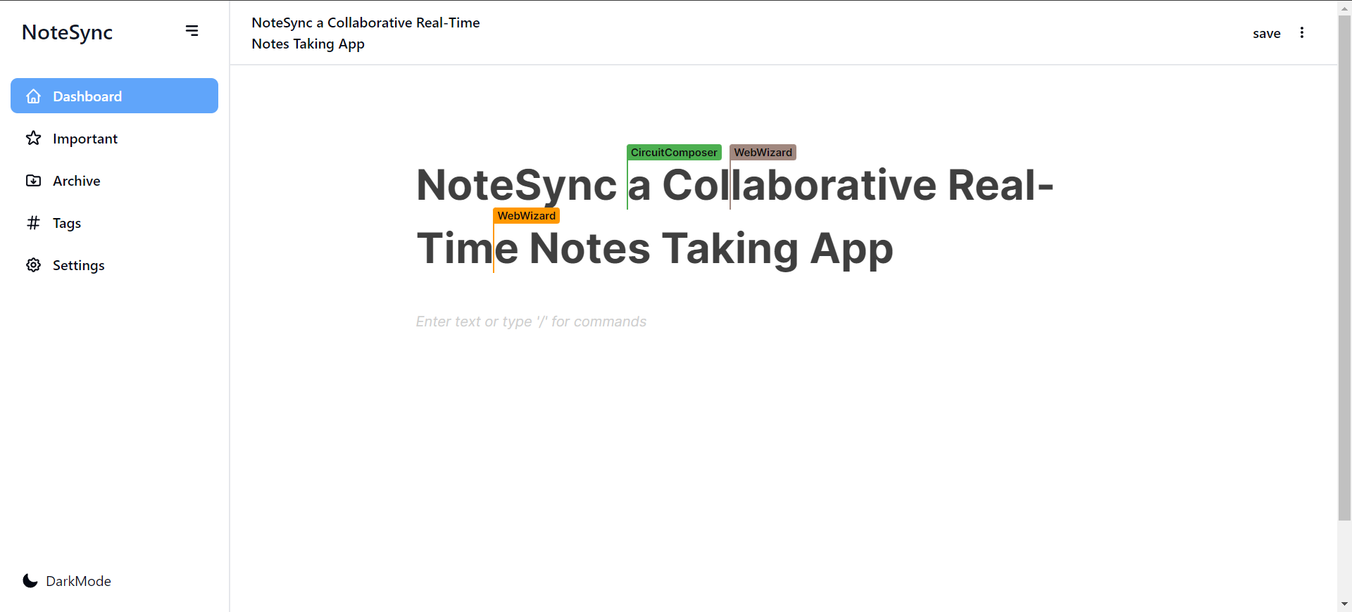NoteSync is a real-time collaborative note-taking app with a Notion-like editor, supporting up to 100 concurrent users. Powered by Yjs for efficient synchronization and Blocknote with TipTap/ProseMirror for a rich text experience, it ensures seamless collaboration. Session management is handled by PartyKit, and OAuth guarantees secure access. Zustand enhances responsiveness, and the Agile-driven team prioritizes continuous improvement for user satisfaction.